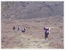 Trek from Lamune - Gochela, 4995 M –Thangsing (3936 m/8 km / 7 hours) Stay O/N. |